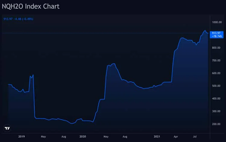 Figura 1. Evolución del índice NQH2O a lo largo del tiempo. tradingview.com, 2021.